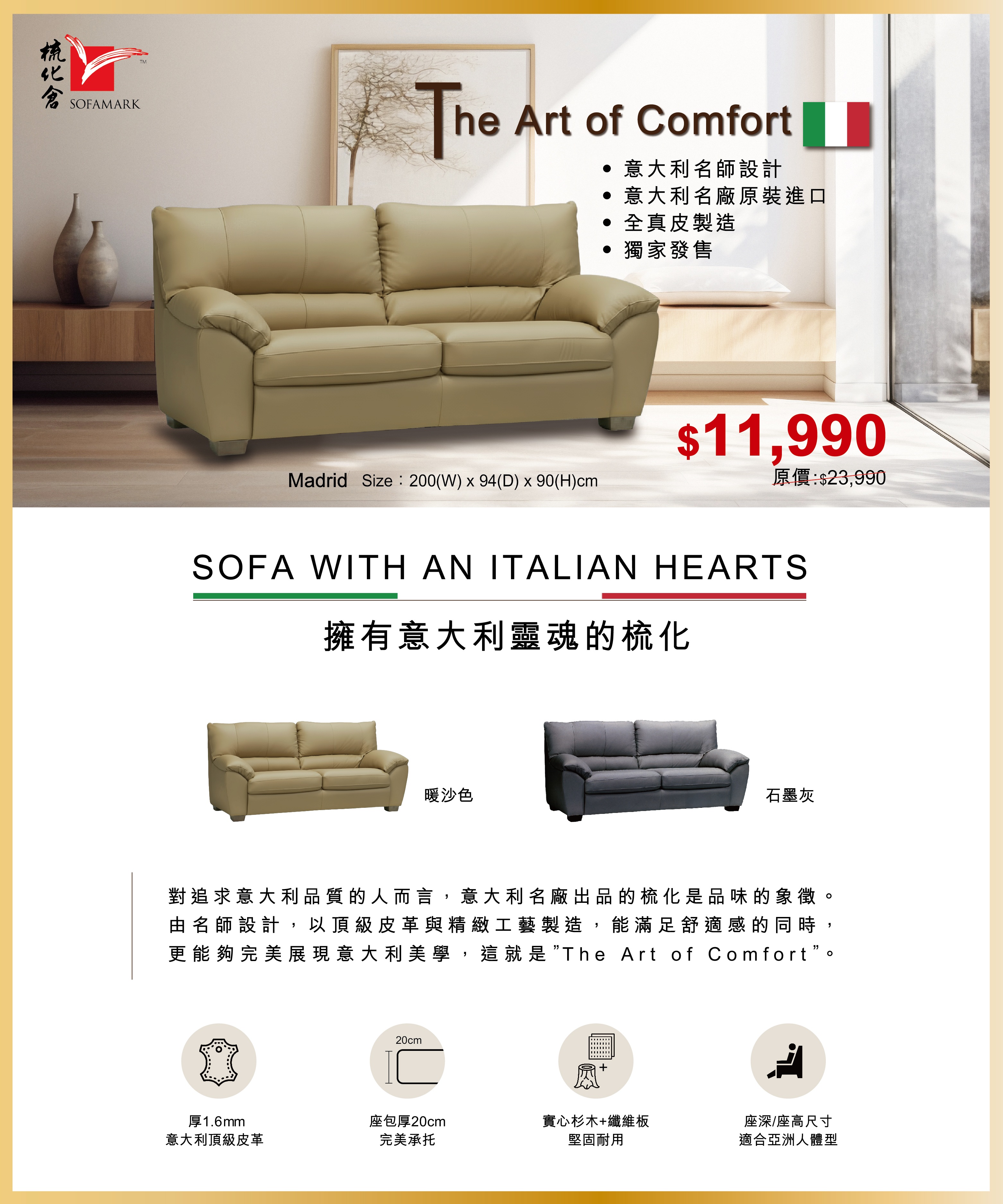 更能夠完美展現意大利美學,是為 ”The Art of Comfort”,梳化倉於香港獨家發售。